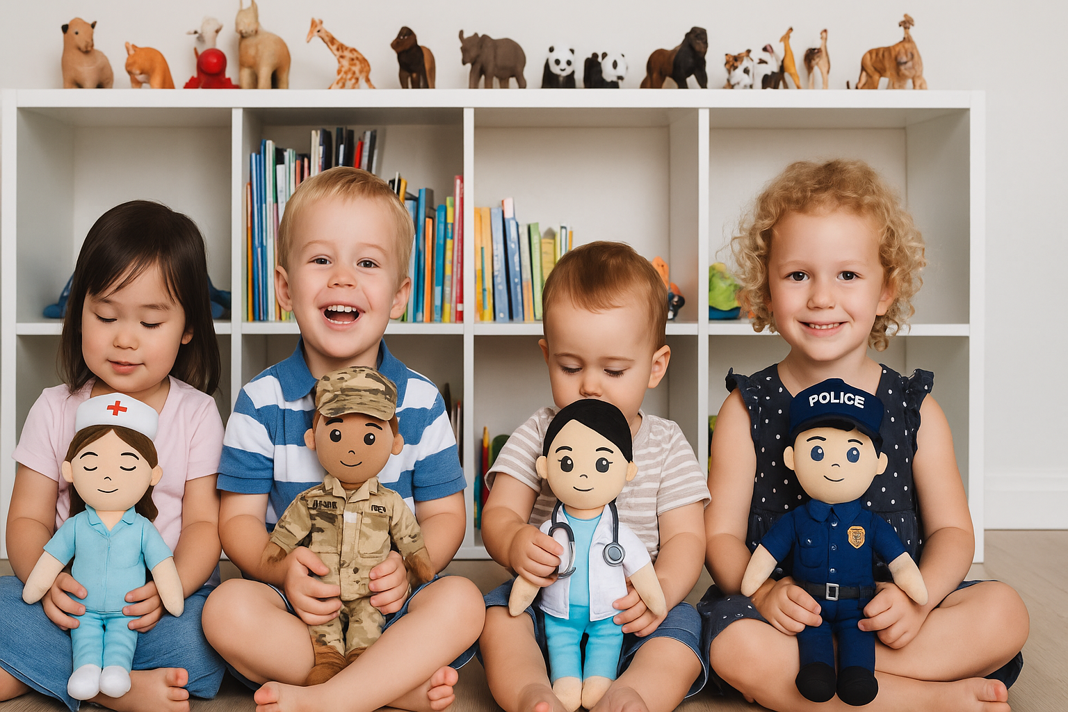 Spark imagination and kindness as kids play with dolls inspired by real-life heroes—firefighters, doctors, police officers, and more—encouraging stories of courage, care, and community.